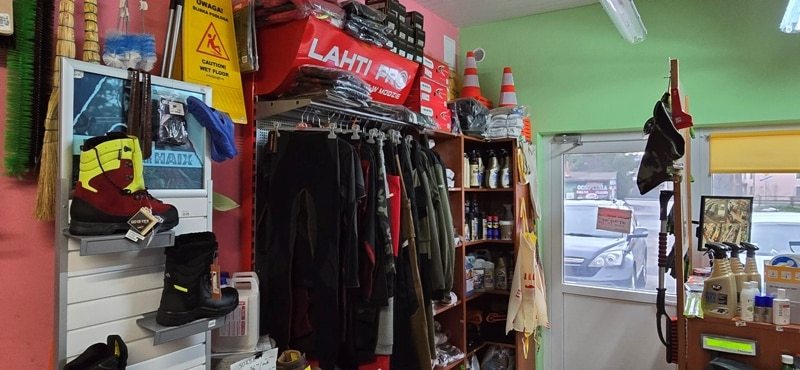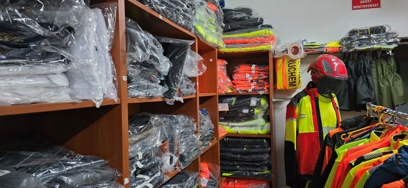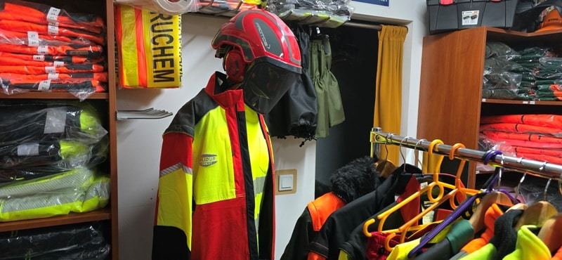- specjalistyczna odzież dla pilarzy (w tym spodnie antyprzecięciowe i kurtki ochronne)